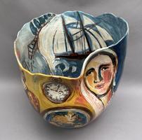 Max 60, private commission for 60th birthday, large vessel painted with slips