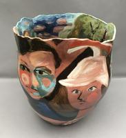 Paradise, vessel, red earthenware clay, slips. Private commission