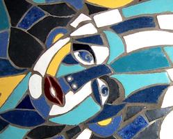 Handmade tile mosaic, for fireplace hearth. Craft crank clay, coloured glazes
